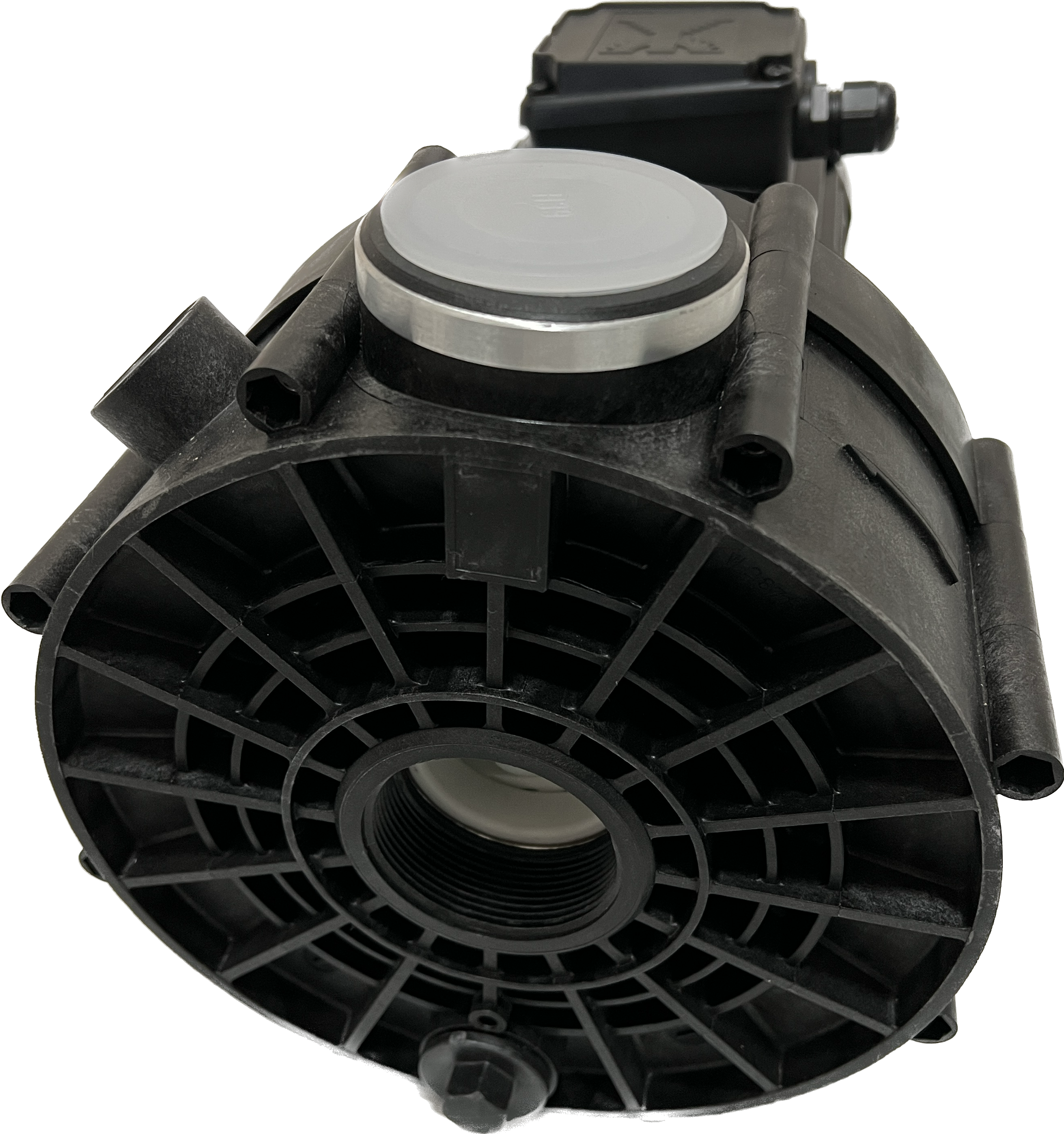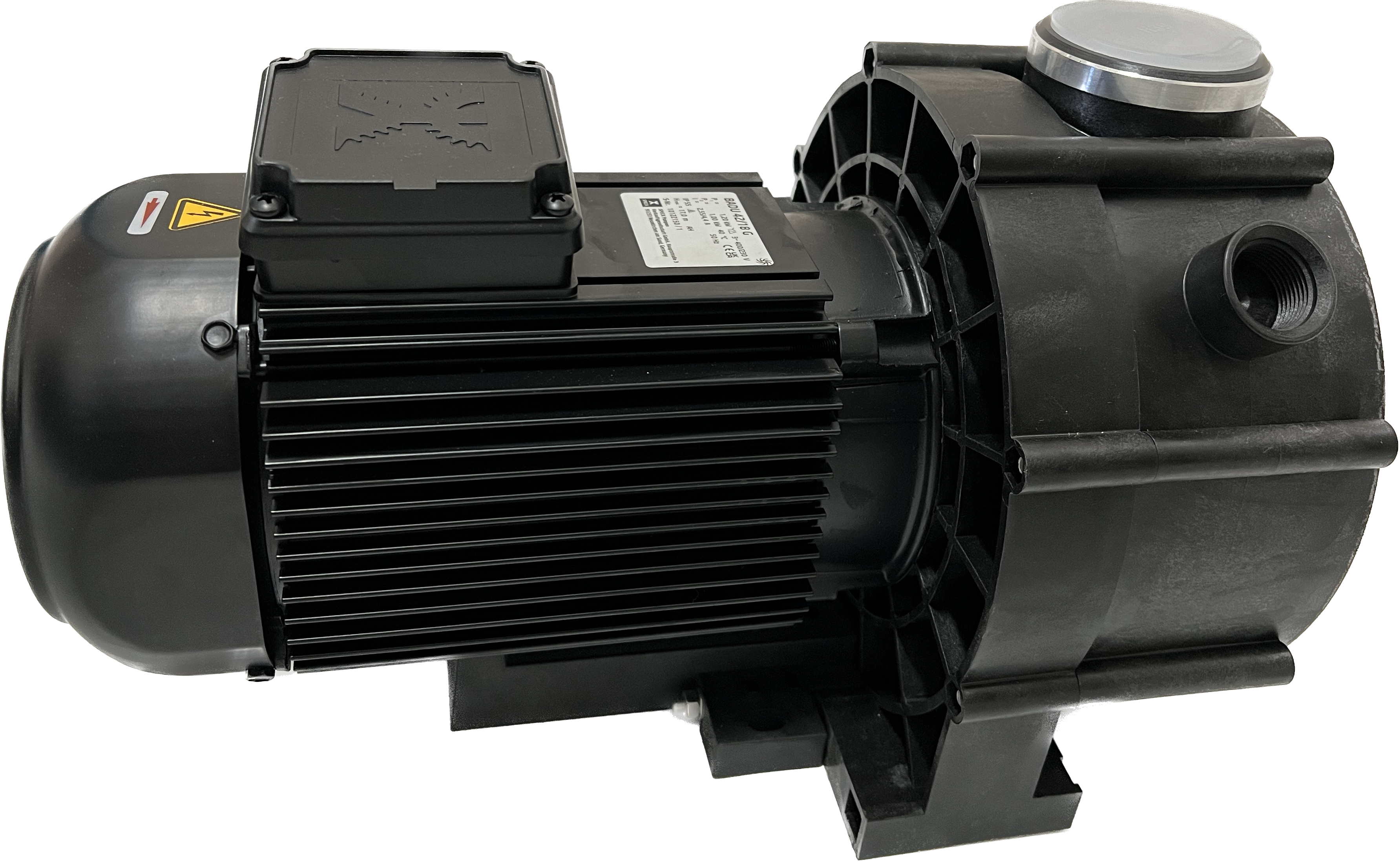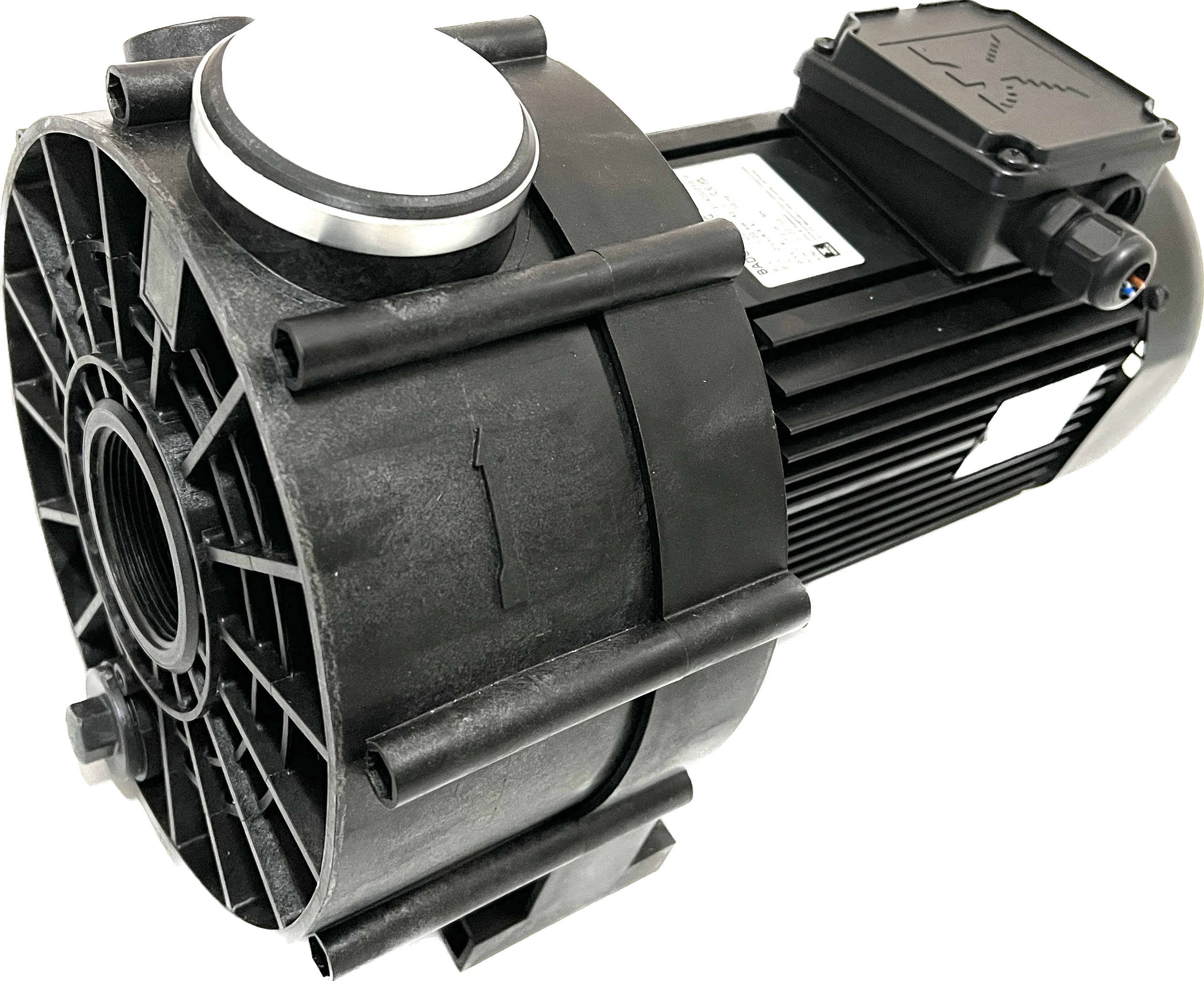 Blockpumpe mit geschlossener Balg-Gleitringdichtung, auf Kunststoff-Laufradnabe montiert. Motor- bzw. Pumpenwelle kommt mit dem Badewasser nicht in Berührung! Elektrische Trennung.