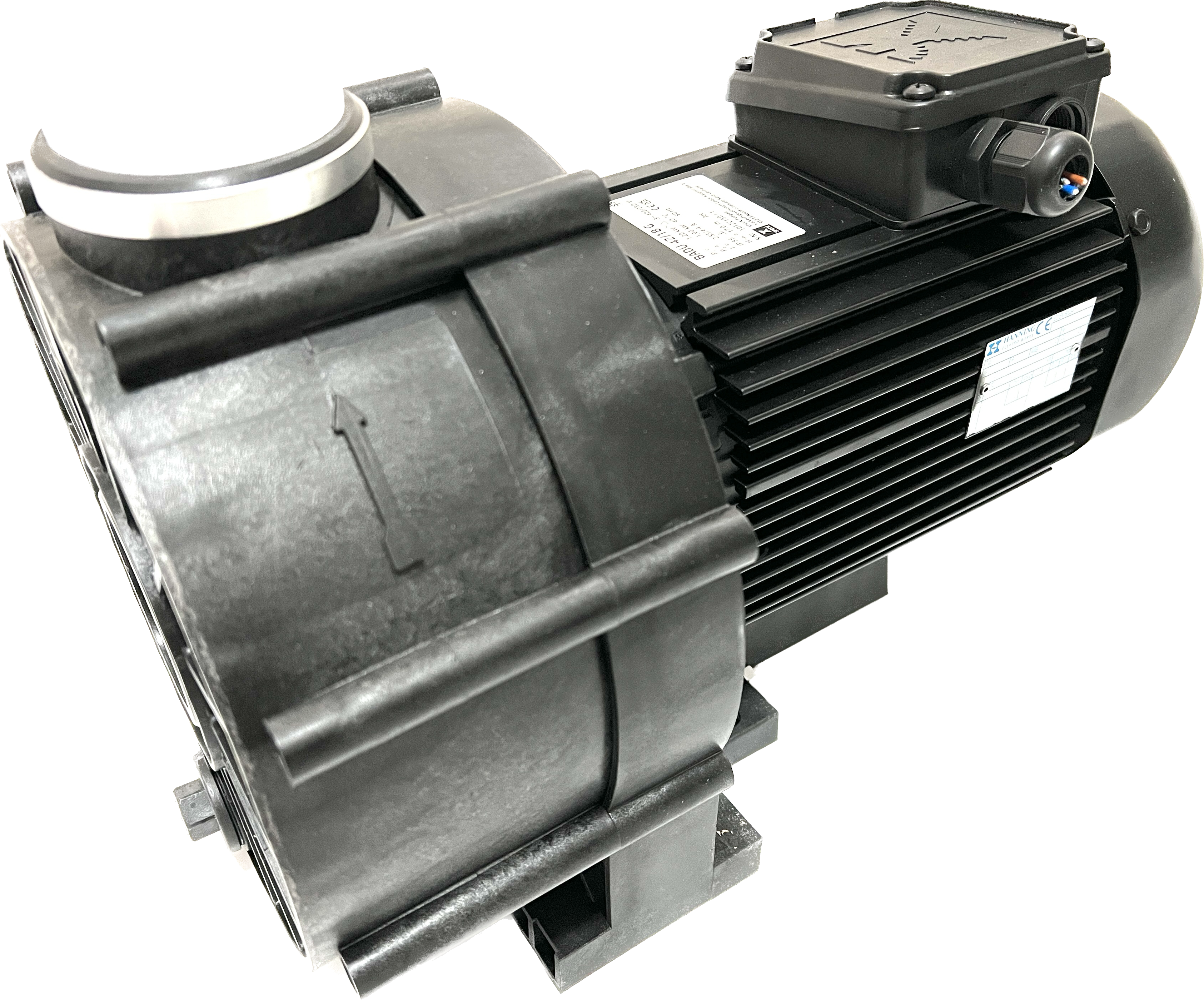 Die medienberührten Kunststoffteile der BADU 42/18 G Dr. in Drehstromausführung sind überwiegend aus Polypropylen PP GF 30 hergestellt und haben damit eine hervorragende Korrosionsbeständigkeit gegenüber dem Schwimmbadwasser und den zur Wasserpflege üblichen Wasserbehandlungsmitteln.