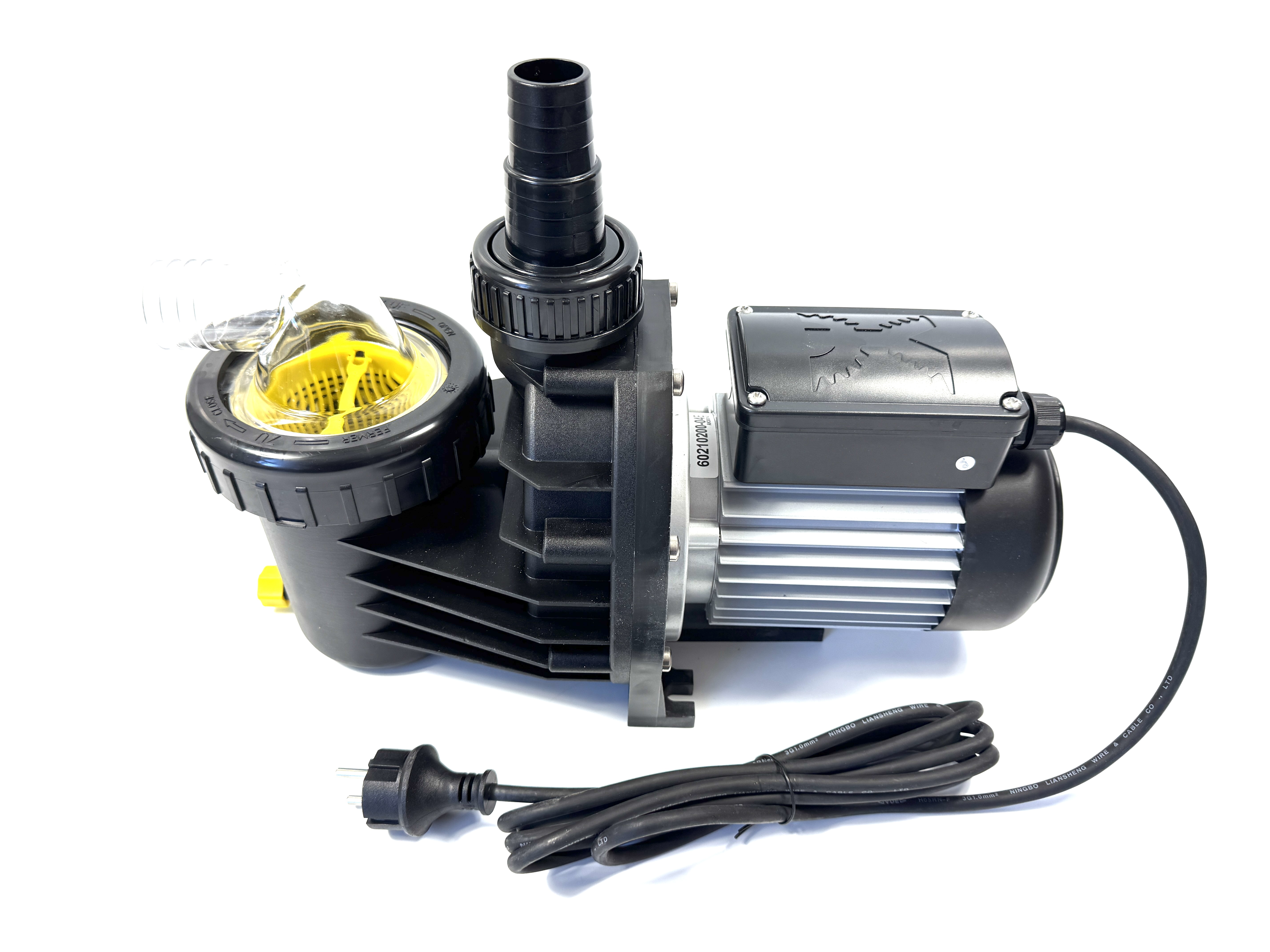 Schwimmbadwasser-Umwälzpumpe in Filteranlagen für Klein- und Aufstellbecken bis 30 m³. Aufstellbar max. 1,5 m oberhalb oder max. 3 m unterhalb des Wasserniveaus.