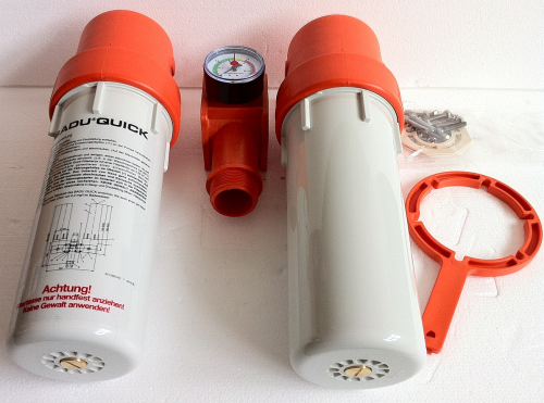 BADU Quick Typ 2 aus glasfaserverstärktem und unverstärktem Kunststoff, mit Manometer, mit zwei Filterkerzen, ohne Pumpe
