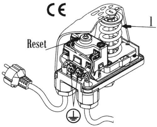 Der Trockenlaufschutz ist einsetzbar für Pumpen, welche einen Mindestdruck von 0,1 bar erreichen. Um die Pumpe zu starten ist der rote Taster zu drücken und so lange gedrückt zu halten bis die Pumpe den Druck aufgebaut hat. Dann kann der Taster losgelassen werden und der Trockenlaufschutz ist aktiviert. Fällt der Druck unter den vorher eingestellten Wert von z.B. 0,5 bar wird die Stromversorgung zur Pumpe unterbrochen. Der Trockenlaufschutz kann für einen Druckbereich von 0,1 - 0,9 bar eingestellt werden. Die Werkseinstellung beträgt 0,1 - 0,5 bar.