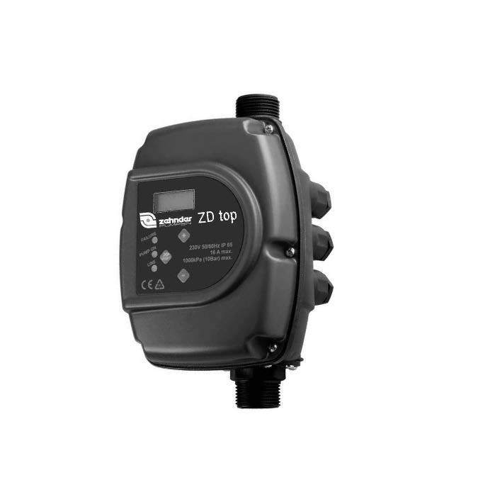 Der ZD TOP ist eine elektronische Kontrollvorrichtung für Einphasen-Elektropumpen, die den Start und den Stopp der Pumpe automatisch steuert und die Pumpe schützt, wenn den Betrieb störende Bedingungen auftreten wie z.B. Wassermangel, Motorüberlastung oder Frostgefahr.