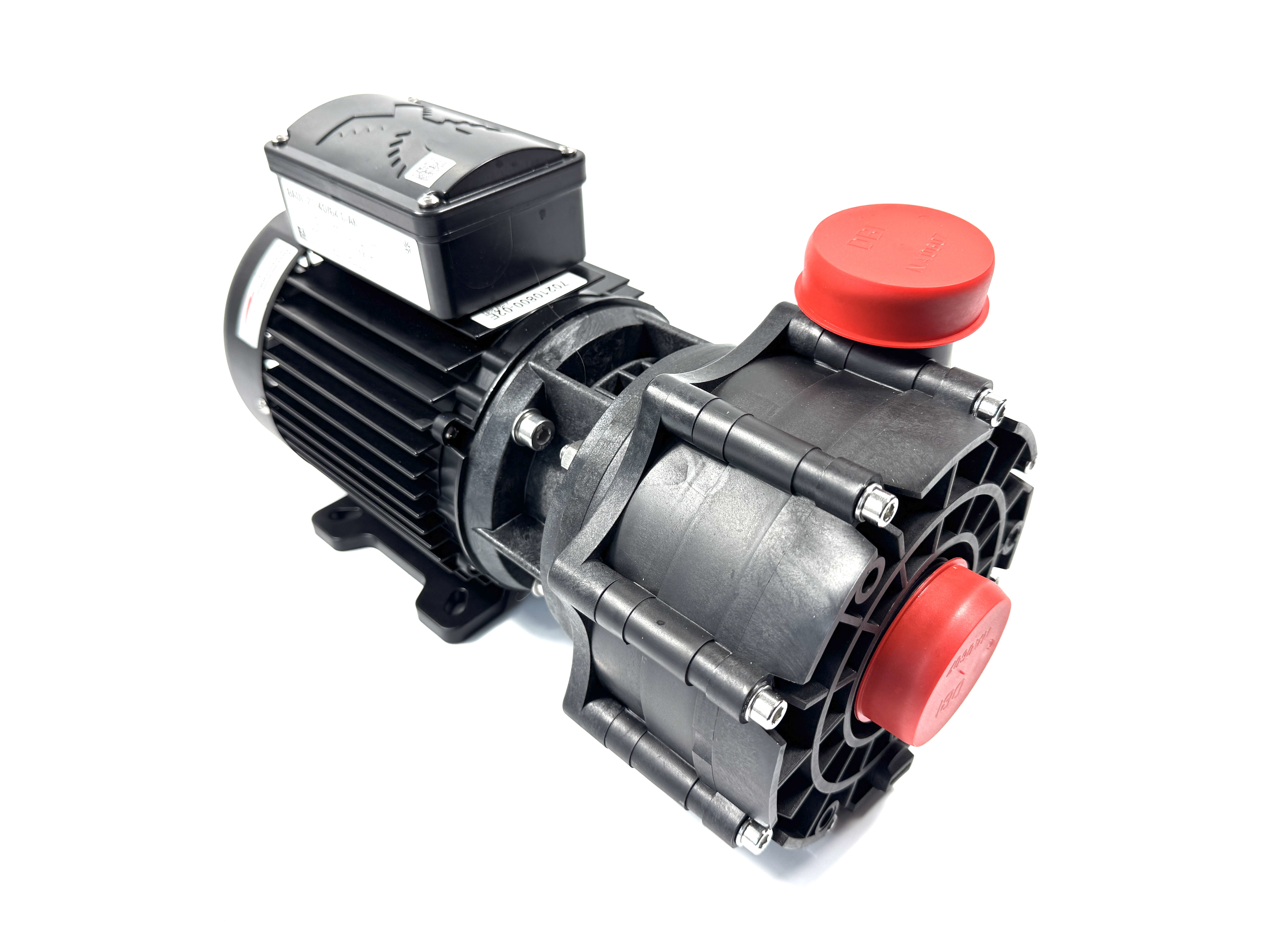 Monoblock-type pump with a closed bellows-type mechanical seal mounted on a plastic shaft protector sleeve. Motor/pump shaft has no contact with the pool water! Complete electrical separation.