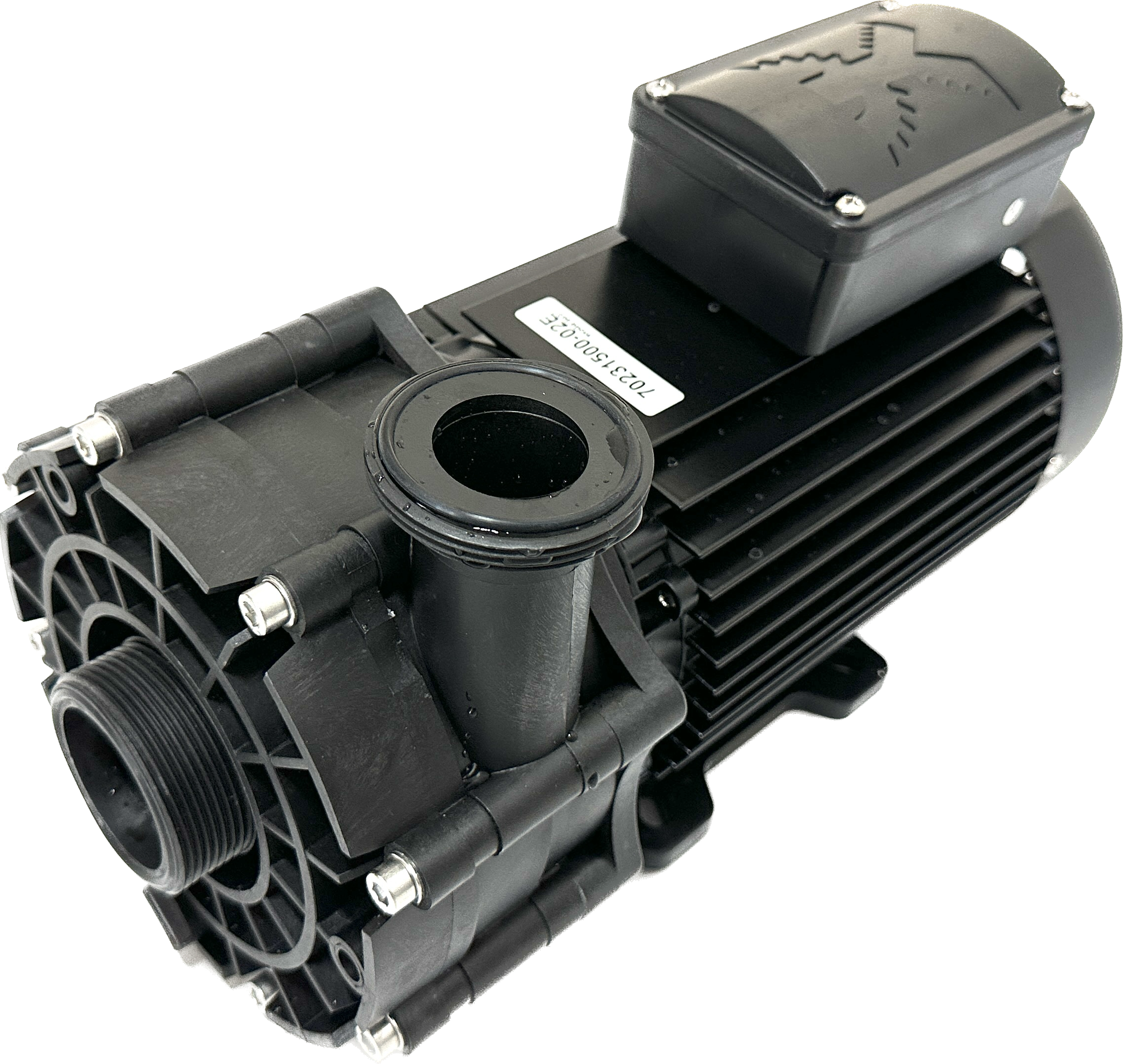 Monoblock-type pump with a bellow-type mechanical seal mounted on a plastic shaft protector sleeve. Motor/pump shaft has no contact with the pool water providing complete electrical separation. Discharge outlet swivels gradually by 90°. The unit may be installed in a vertical position with the pump facing downwards. Threaded inlet and outlet connections suitable for special union.
