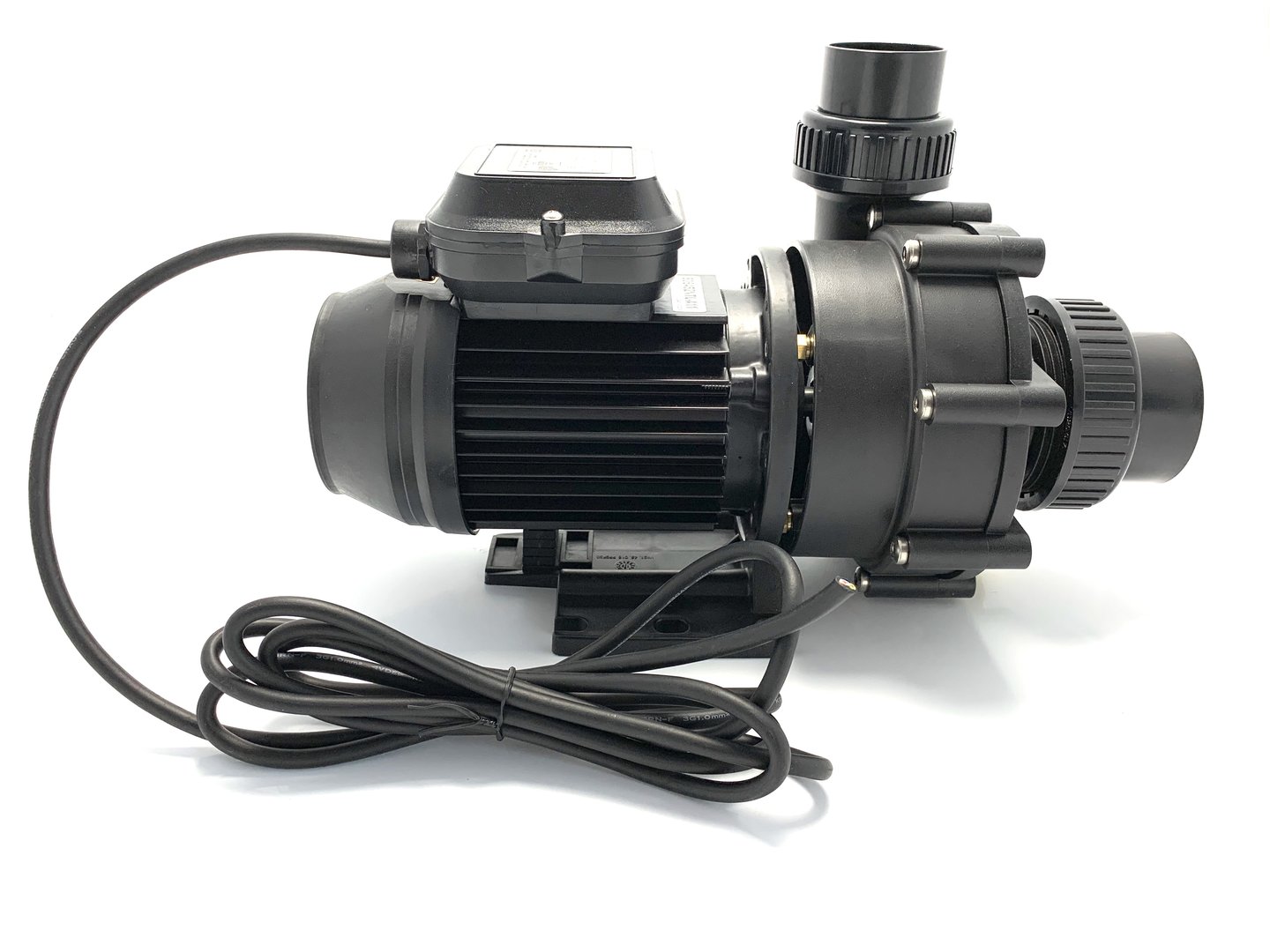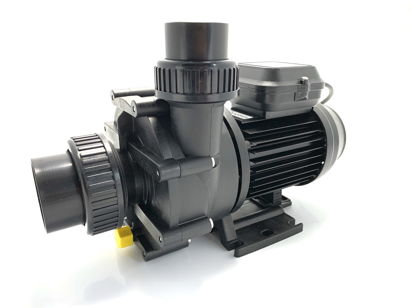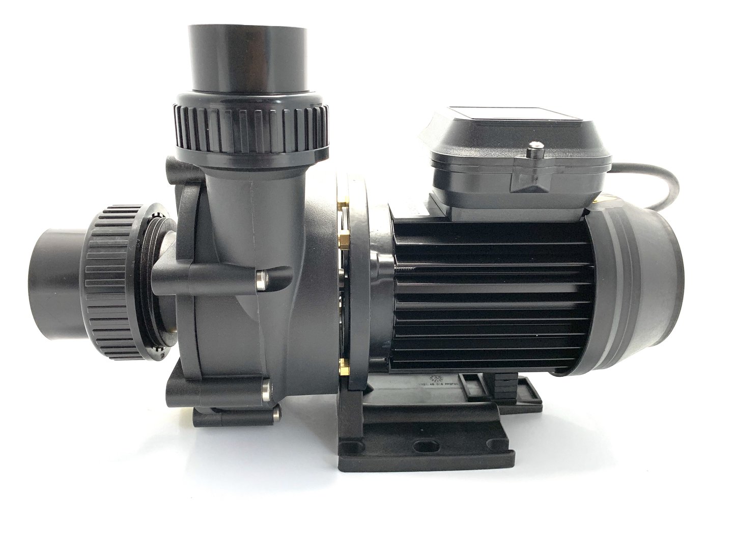 Monoblock-type pump. The bellow-type mechanical seal is mounted on a plastic shaft protector sleeve. Motor/pump shaft has no contact with the pool water providing complete electrical separation.