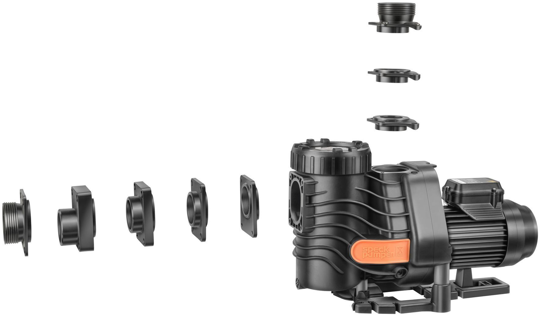 With the BADU EasyFit the often time-consuming task of installing a new circulation pump into an existing filter unit is a thing of the past. The BADU EasyFit fits almost every unit, regardless of the manufacturer: 6 adaptable connection sets provide inlet and outlet connections which are compatible with varying pipe dimensions and connection options. Variable pump feet ensure that the pump can take over the exact position of the old pump.