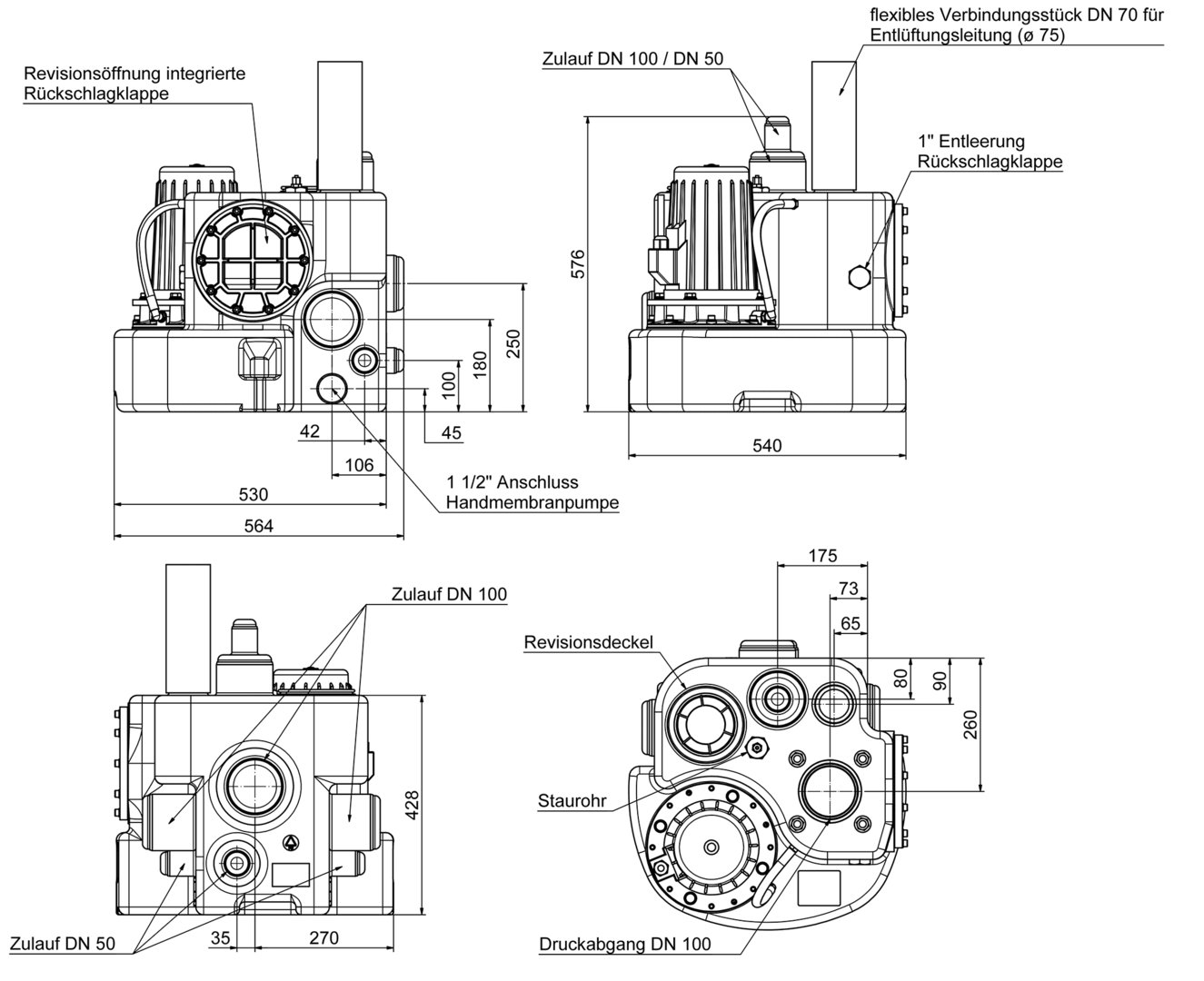 - connection flange piece DN 100 for pressure pipe (DN 80 optional)