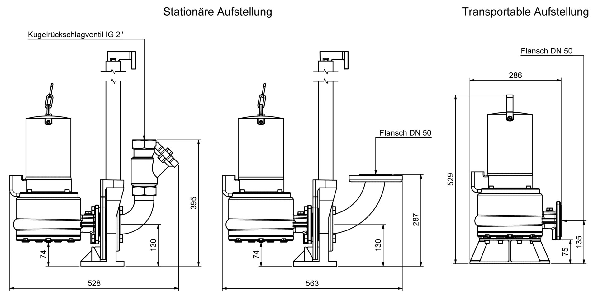 - horizontal pressure outlet with flange DN 50