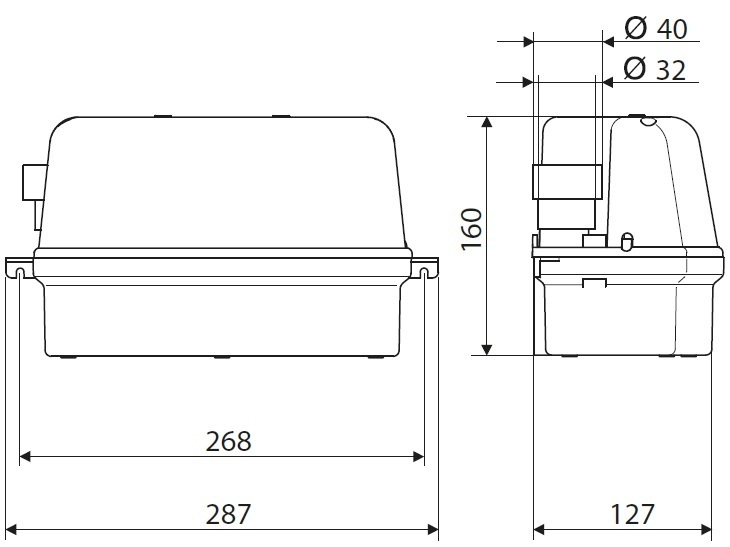 - if the pump fails (unacceptable high water level in the tank), an alarmswitch can switch off the climate control unit or calorific value boiler (maximum switching capacity 4 A)