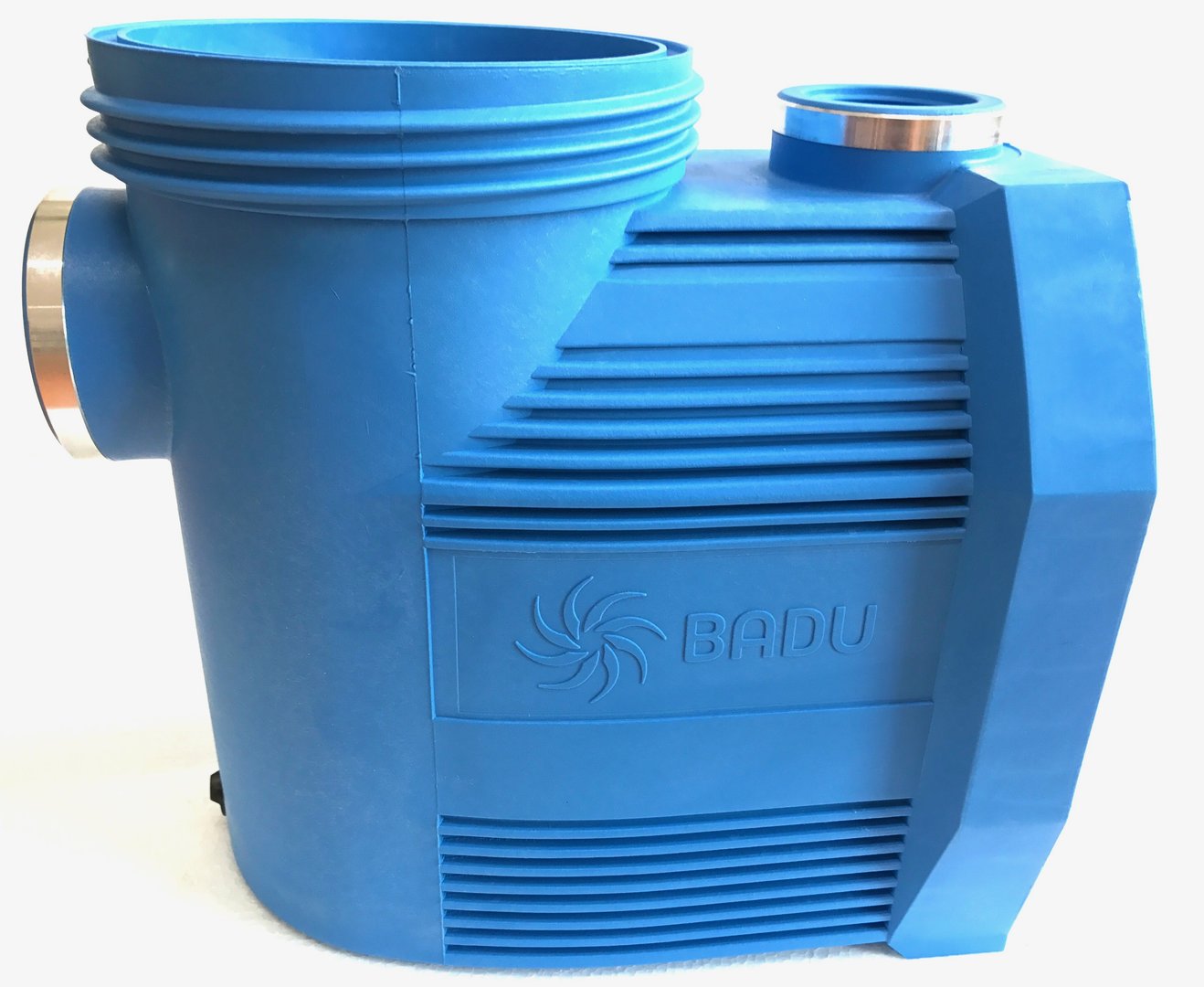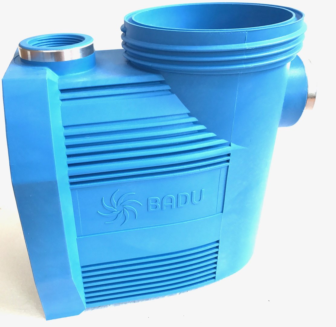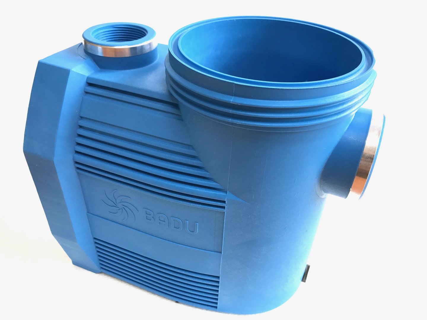 Gehäusekomplett, Rp 2 x 1 1/2, blau, für BADU 90/13, BADU Prime 13, BADU 90/15, BADU Prime 15, BADU 90/15 G, BADU 90/20, BADU Prime 20 und BADU 90/20 G, Pos.101, bestehend aus Gehäuse, Saugsieb, Gewindering, Klarsichteinsatz mit O-Ring, Verschlussschraube mit O-Ring