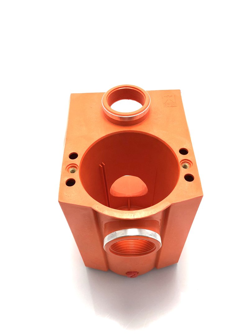 Gehäuse, komplett, Rp 1 1/2 x 1 1/2, orange, für BADU E 40/69, BADU E 40/70, BADU E 40/109 und BADU E 40/110, bestehend aus Gehäuse, Saugsieb, Deckel mit O-Ring und Knebeln, Verschlussschraube mit O-Ring, Pos. 101