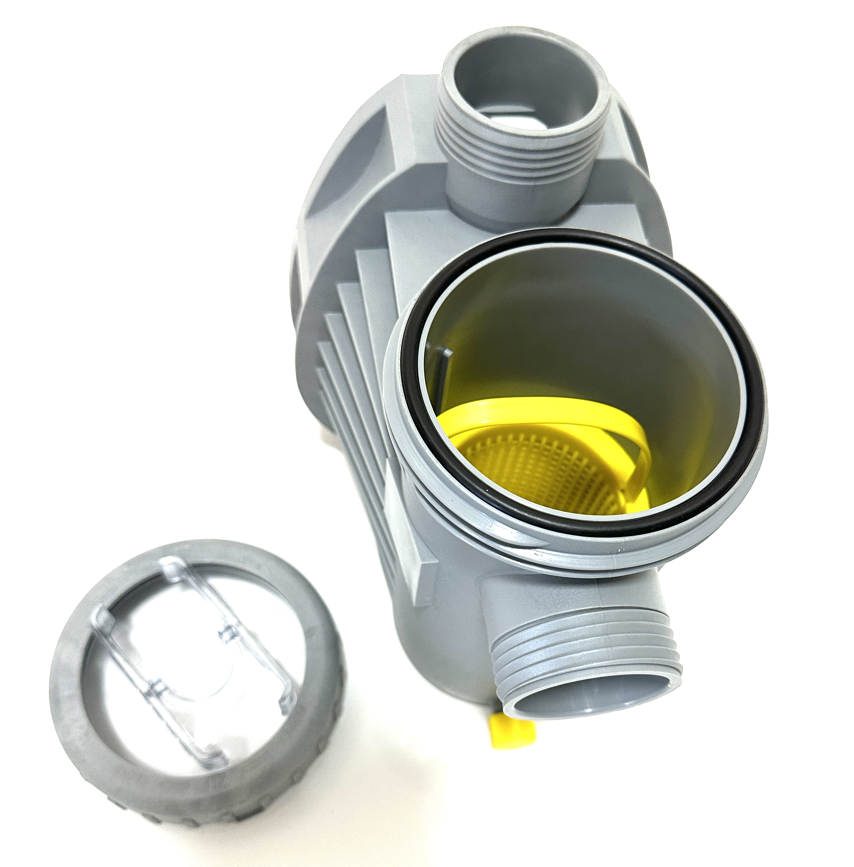 Gehäuse grau, Pos. 101, Saugsieb, Pos. 143, Klarsichteinsatz transparent, Pos. 160.1, Gewindering grau, Pos.160.2, O-Ring für Deckel, Pos. 412.1, Verschlusskappe gelb, Pos. 582, für Messwasserpumpe 1 und Messwasserpumpe 2, alle Modelle