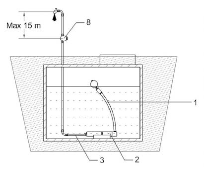 - Komplettpaket zum automatischem Ein- und Ausschalten der Tiefbrunnenpumpe und zusätzlichem Trockenlaufschutz