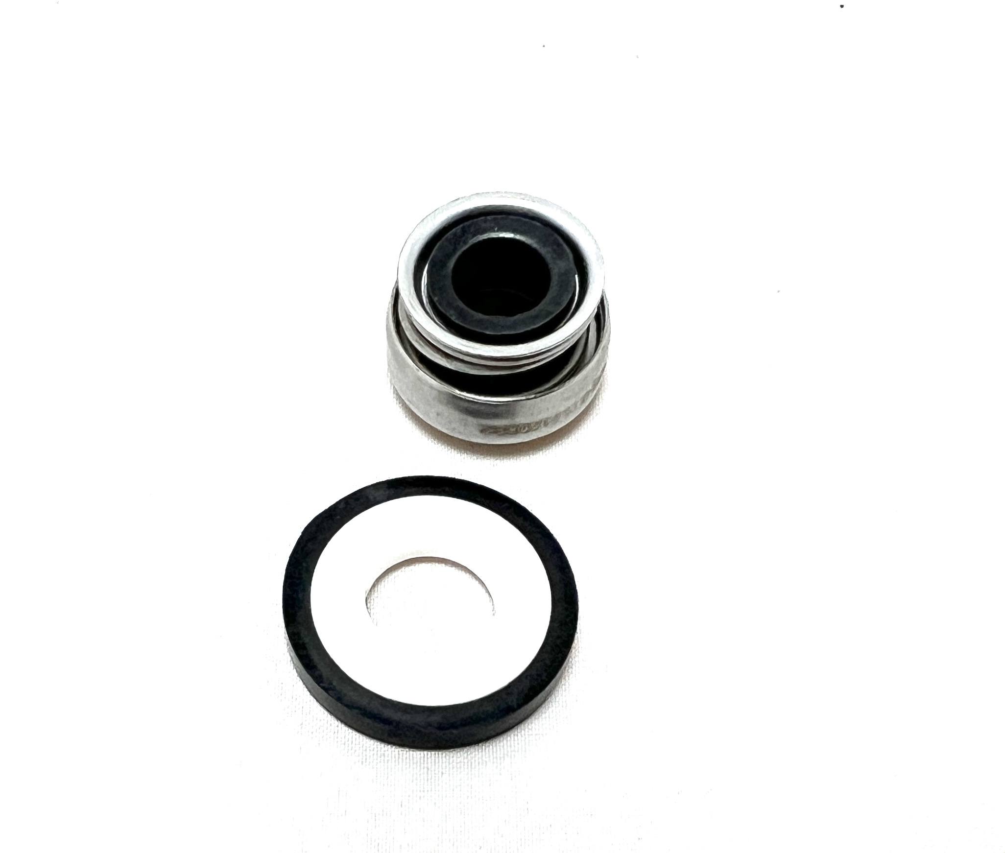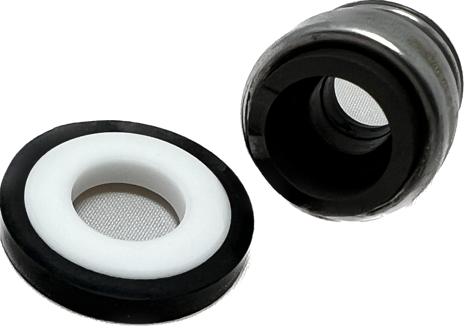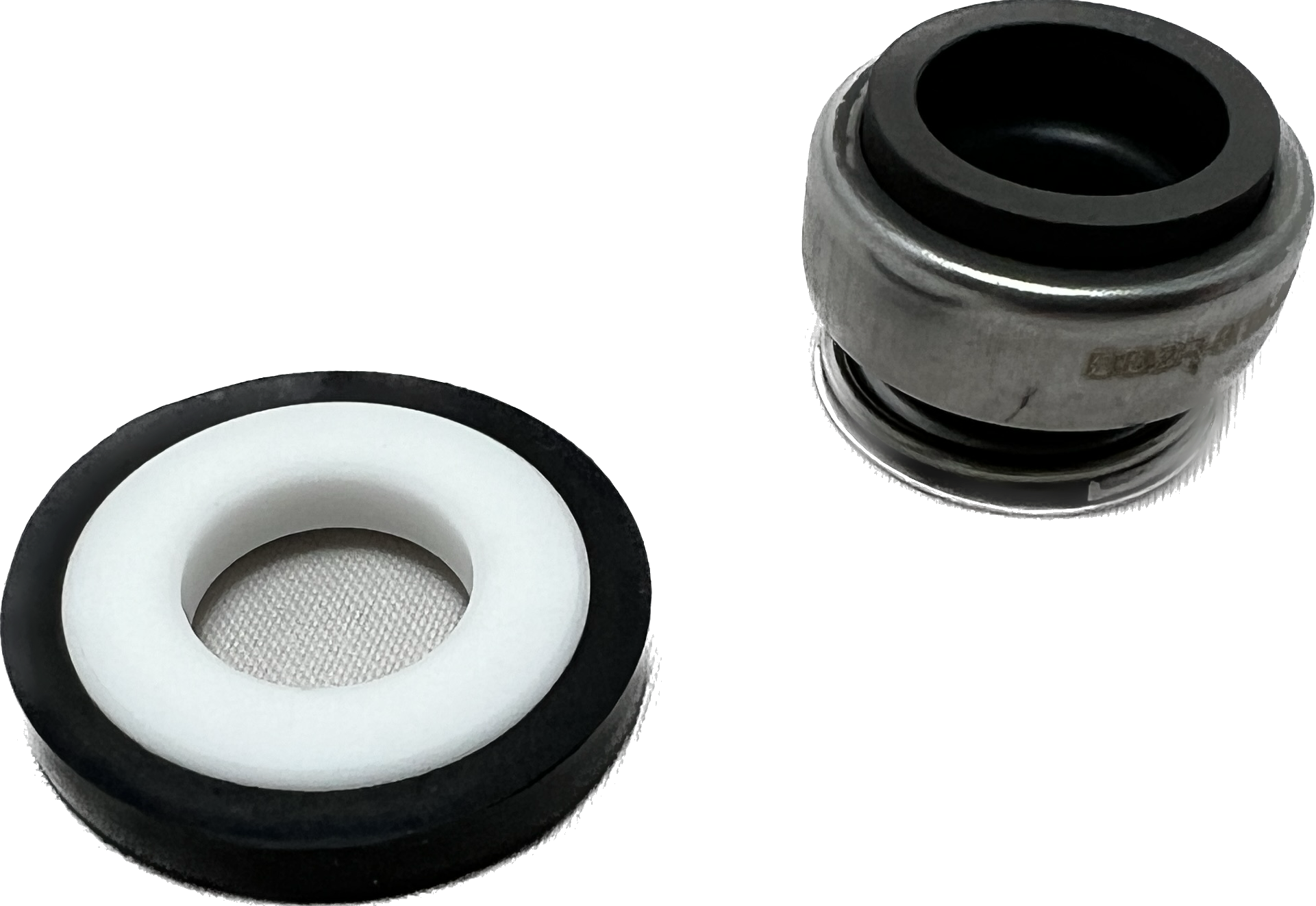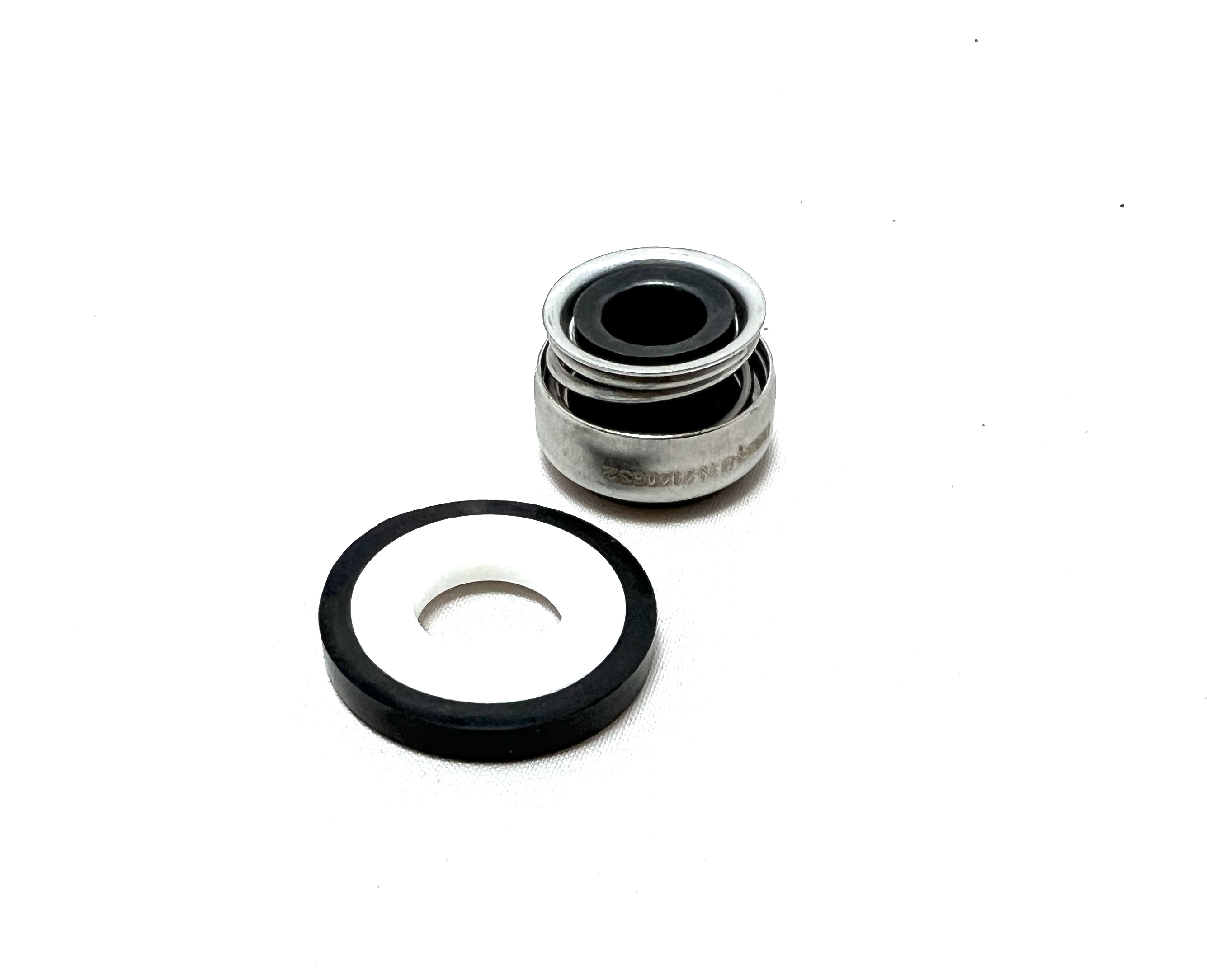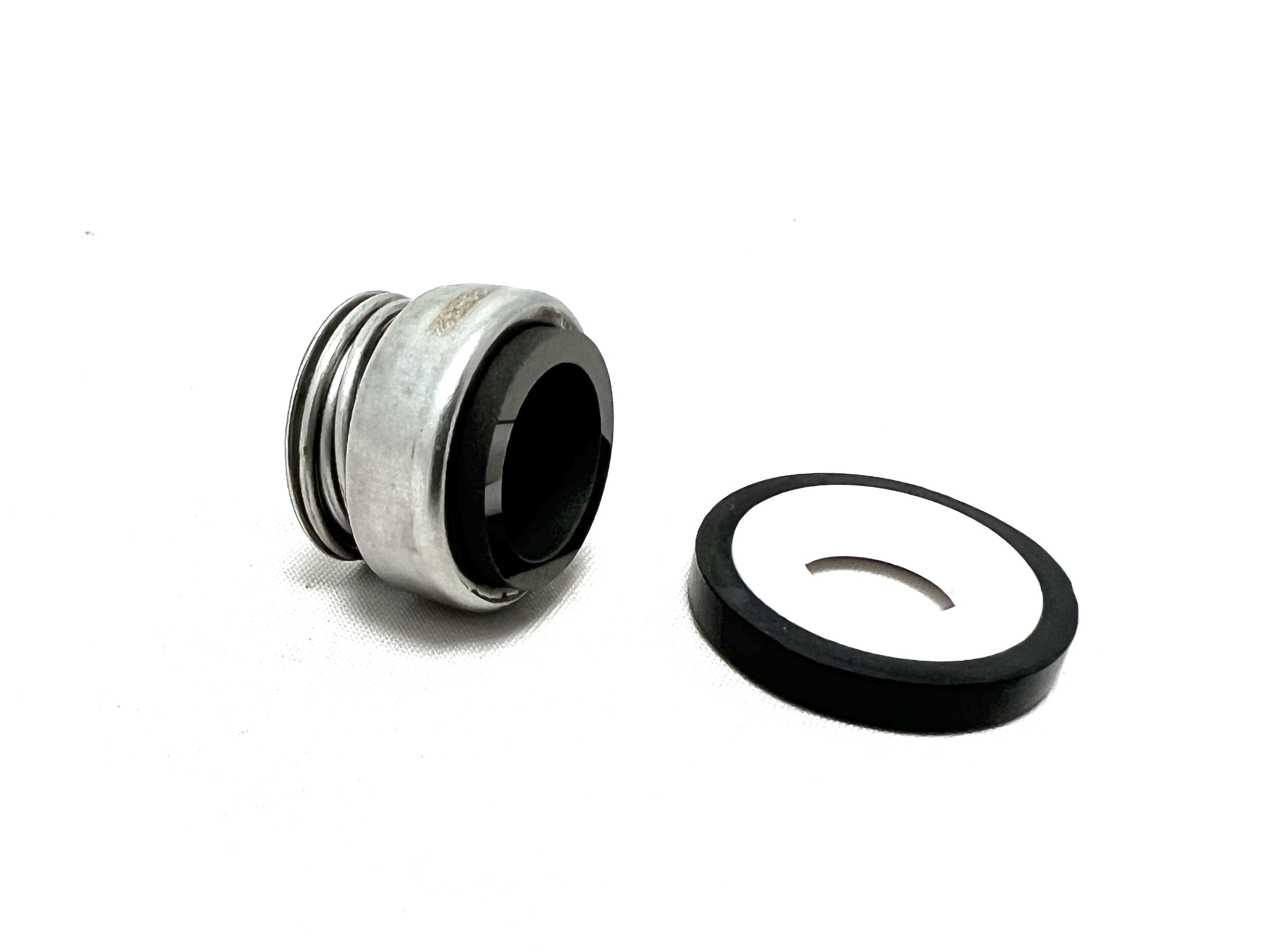 Die Gleitringdichtung zu Zehnder Tauchmotorpumpen der Baureihen FSP 330 besteht aus einer Gummimanschette, welche den weißen Gegenring einfaßt und dem rotierenden Teil, bestehend aus Feder und Kohle Gleitfläche, welche hinter dem Laufrad auf der Motorwelle sitzt. Die Funktion der Gleitringdichtung besteht darin, das Wasser am Eintritt aus dem Pumpengehäuse in Richtung Motor zu hindern.