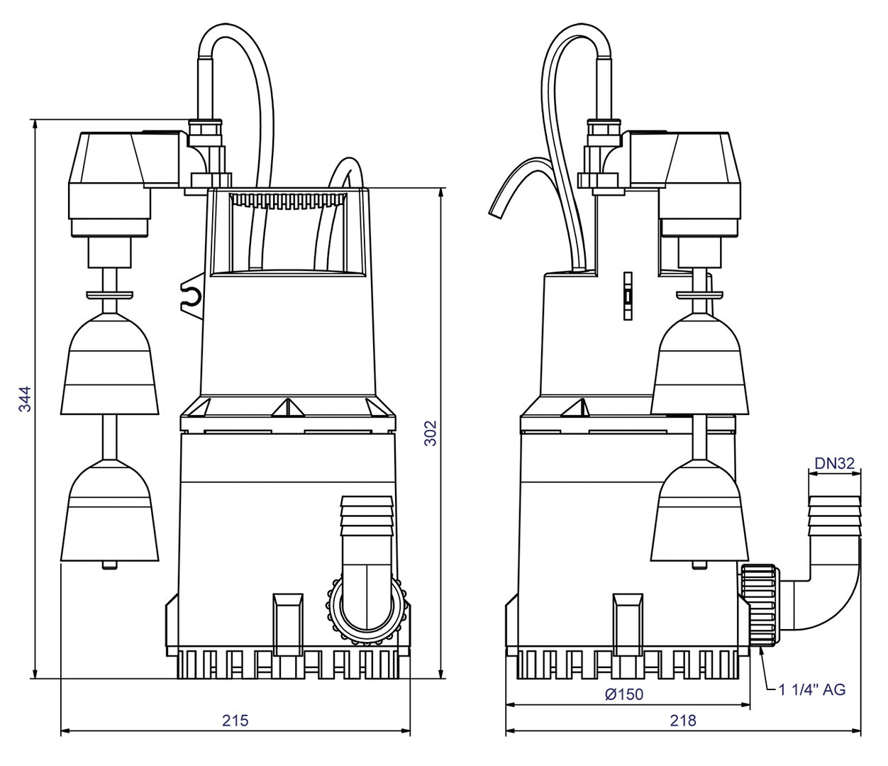 - horizontaler Druckabgang 1 ¼” AG