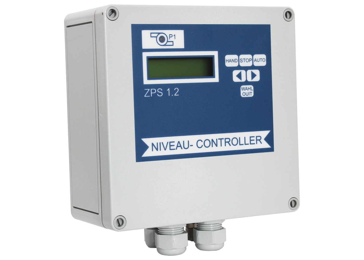 - Niveausteuerung durch Staudruckverfahren, Schwimmerschalter oder 4 – 20 mA Interface für externen Sensor